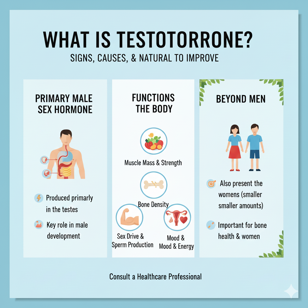 This article explains low testosterone symptoms in men, common causes, diagnosis, and natural ways to improve testosterone levels safely.